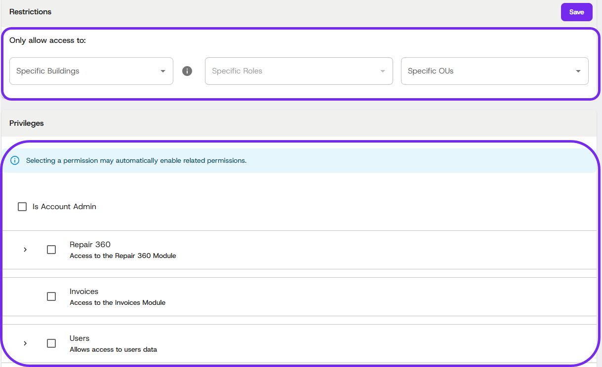Custom roles allow you to control what users can see and do within Dream™. Roles can be created, edited, and assigned from the Settings area.