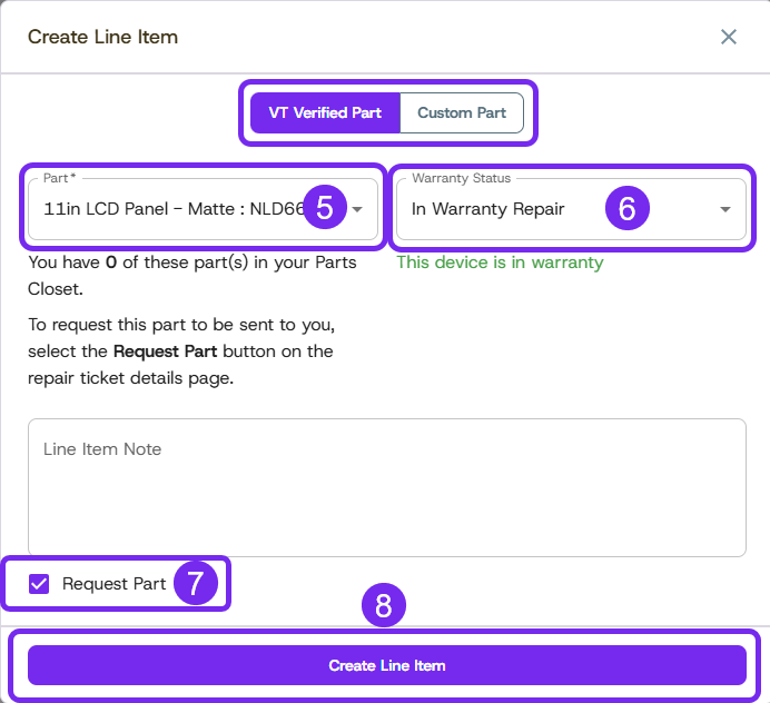- Select Out-of-Warranty or In-Warranty Repair based on the failure type and coverage
